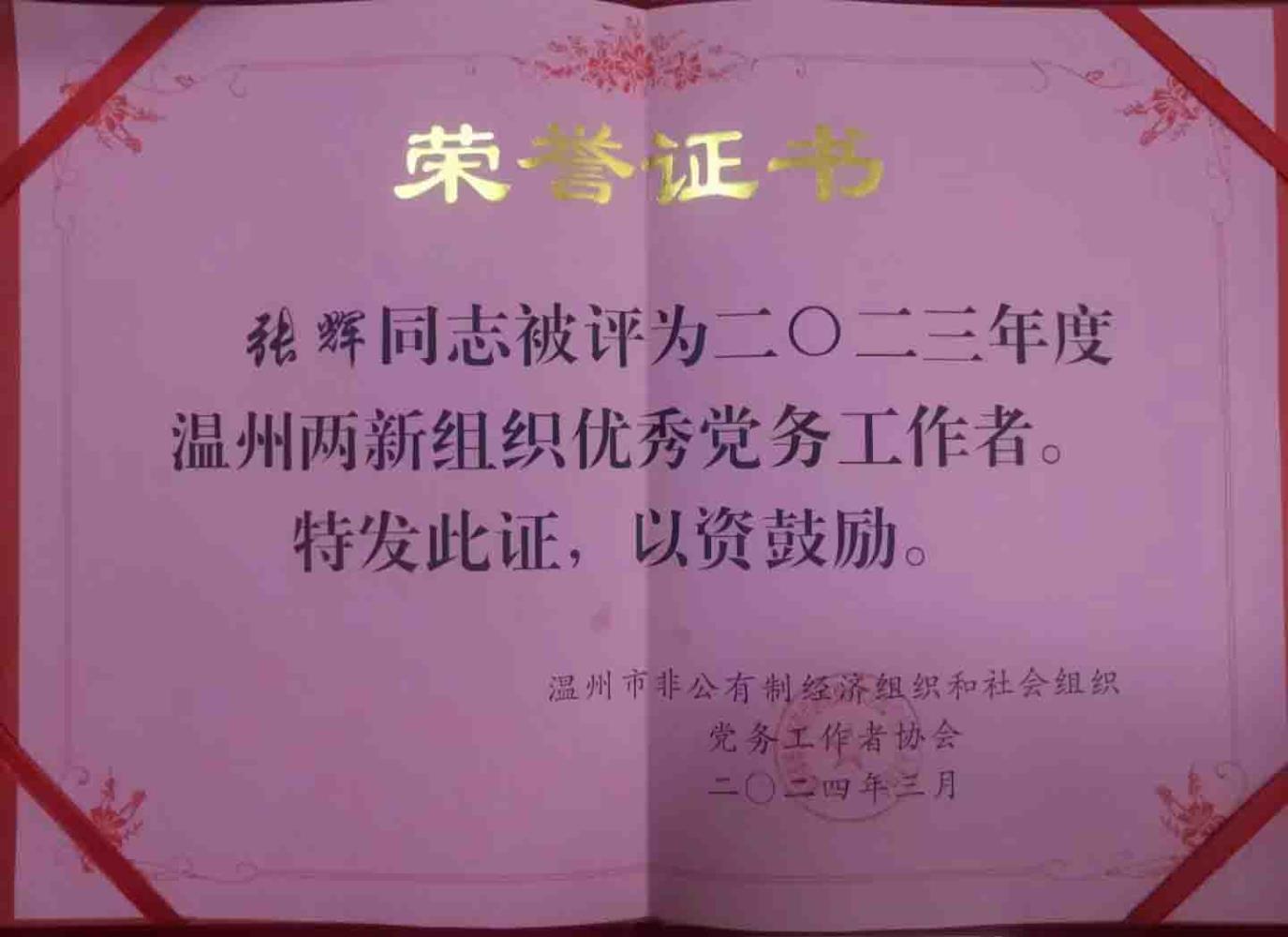 • ÕÅ»Ôͬ־±»ÆÀΪ2023Äê¶ÈÎÂÖÝÁ½ÐÂ×éÖ¯ÓÅÒìµ³ÎñÊÂÇéÕß